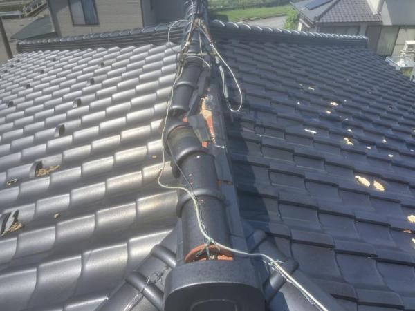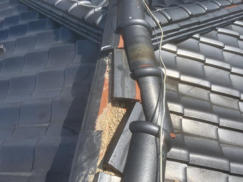棟瓦が破損していたことが原因でした。特に大屋根の棟瓦が激しく崩れていました。