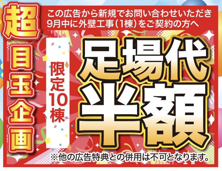 限定10棟まで足場代を半額にいたします!!