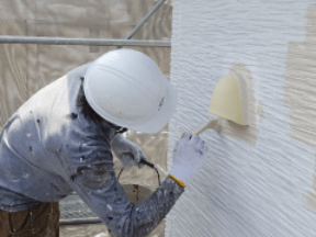 下塗りは施工終了後には隠れてしまいますが、上塗り塗料の密着力を高め、上塗り塗料の性能を発揮する上でも非常に重要な工程となります。この下塗り作業が不十分だと、塗料の剥がれや色褪せなどのトラブルが発生してしまう場合もあります。